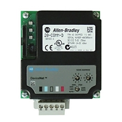 | p The 20-COMM-D is an Allen-Bradley DeviceNet communication adapter. This communication adapter is compatible for use with PowerFlex 700 class drives such as PowerFlex 70 PowerFlex 700 PowerFlex 700H PowerFlex 700S PowerFlex 700L PowerFlex 750 PowerFlex Digital AC Drives DPI external communication kits SMC Flex and SMC-50 smart motor controllers. It has Three (3) LED status indicators 20-pin DPI connector 5-pin DeviceNet connector Node address selector and data rate switch. /p |