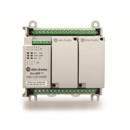 | p p p     The Allen-Bradley 2080-LC20-20QWB is a is a Micro 820 Programmable Logic Controller (PLC). This controller has Twelve (12) 24VDC. VAC discrete inputs Seven (7) Relay outputs Four (4) 0-10V (shared with 24V DC) analog input channels and One (1) 0-10VDC analog output channel. This controller is powered by an external supply voltage of 120VAC / 240VAC. It has One (1) Ethernet I/P communication port and One (1) RS232/485 non-isolated CIP Serial Modbus RTU ASCII communication port. This controller is programmed using the Connected Components Workbench (CCW). /p /p /p |