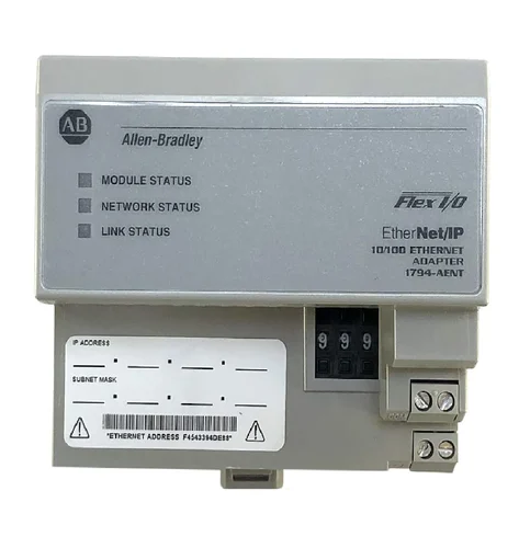 | p p p   The Allen-Bradley 1794-AENT Flex I/O Ethernet/IP Adapter has a 8 Modules I/O Capacity a 10/100 Mbps Communication Rate and a 19.2-31.2V DC Input Voltage Range . It also operates with a 550mA max. Power Consumption and a None(open-style) Enclosure Type Rating. /p /p /p |