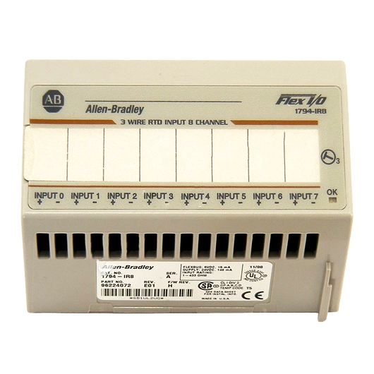 | p   The 1794-IR8 module is a FLEX I/O 8-channel Resistance Thermometer Detector (RTD) input module. Both are block transfer modules that interface analog signals with any Allen-Bradley® programmable controller with block transfer capability. /p |